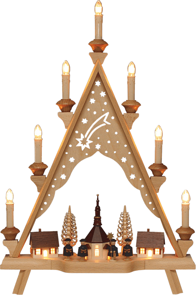 Lichterecke Seiffener Kirche , innenbel. Häuser