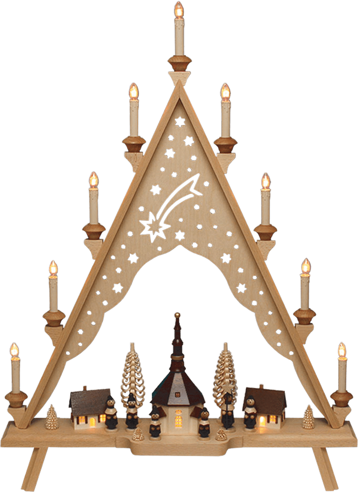 Lichterecke Seiffener Kirche , innenbel. Häuser