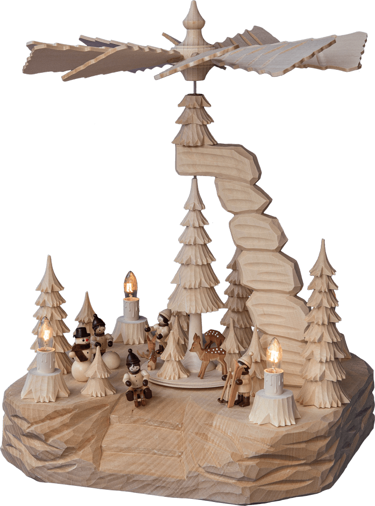 Felsenpyramide Winterkinder auf geschnitzten Sockel