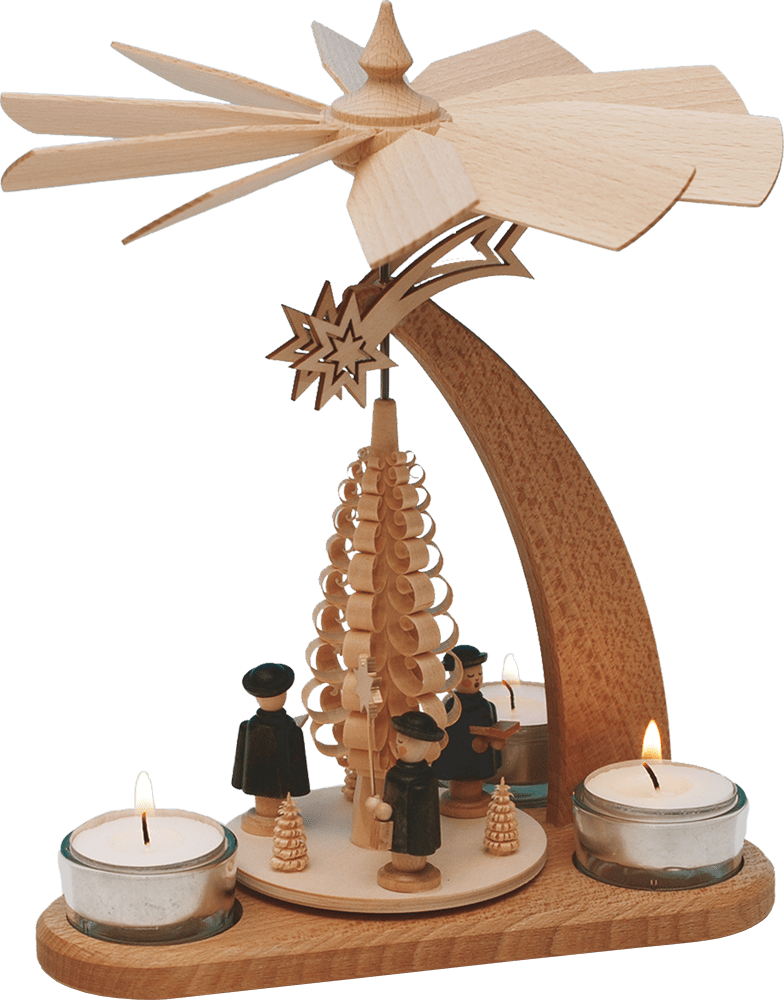 Pyramide mit 3 Kurrendesänger und 3 Glasschalen für Teelichter