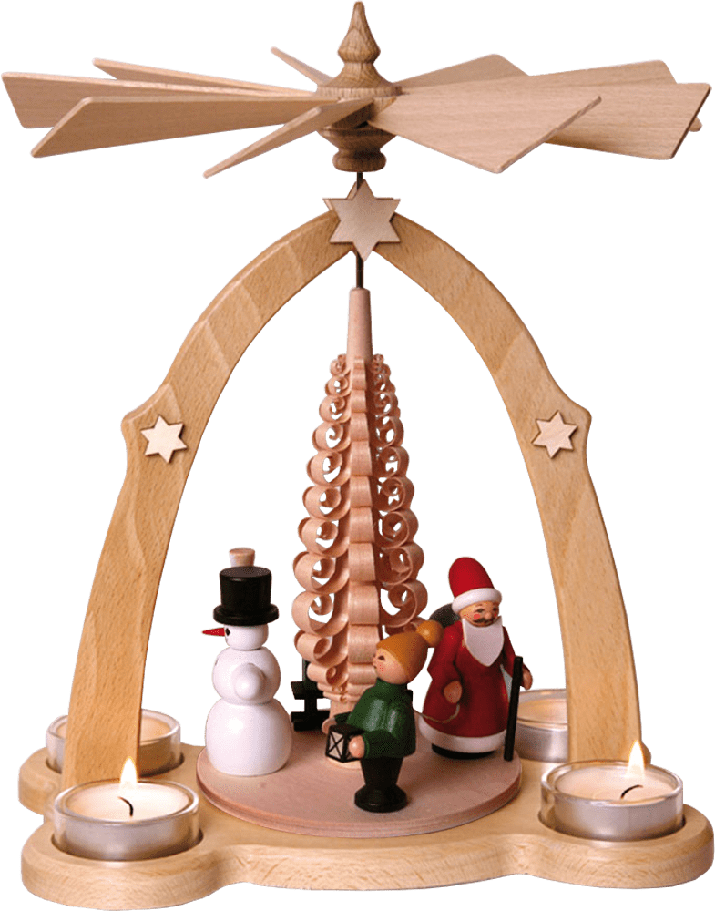Pyramide bestückt mit Weihnachtmann, Schneemann, Laternenkind