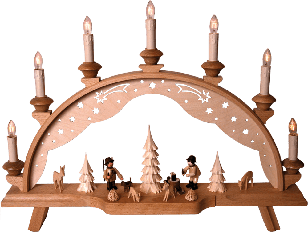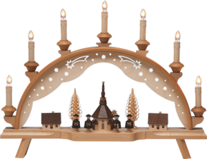 Schwibbogen ist mit 7 elektrischen Kerzen ausgestattet (230V),