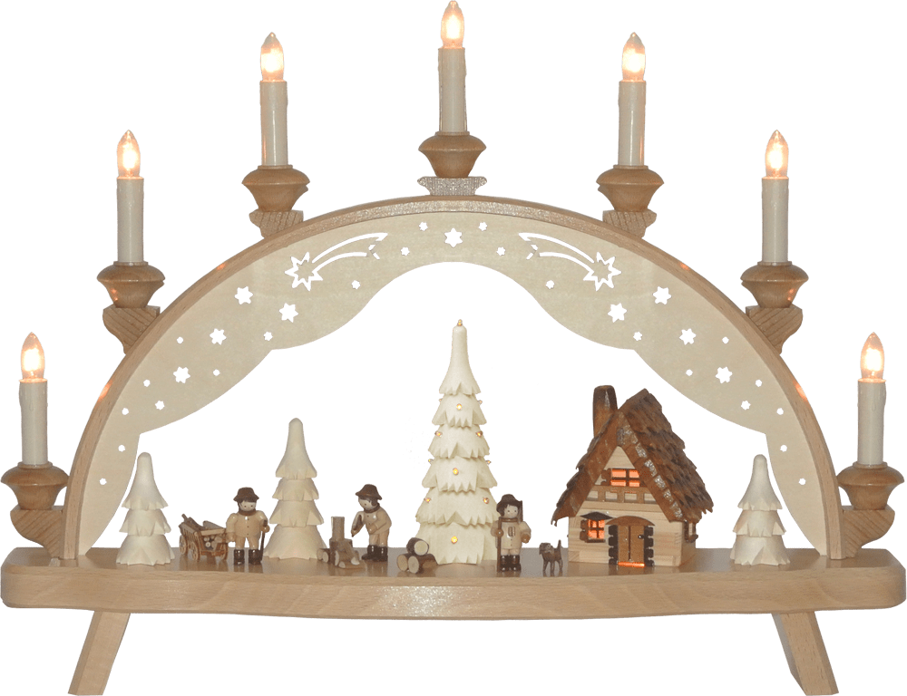 Schwibbogen innenbel. Forsthaus und mit bel. Baum